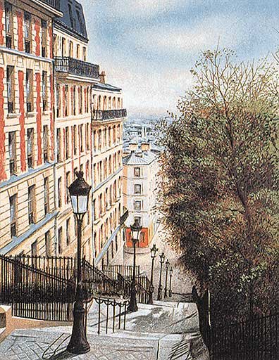 Every trip to Paris that followed was one where I would meet with André. I had the personal opportunity to bring a little bit of Paris back to California through the lithographs and paintings that he created. I walked the bistros (cafés), magasins (shops), the river walks, the parks, the stairs of the Montmartre, continually awed by all the secret little doorways and back streets. I discovered Paris through the body and soul of André Renoux.