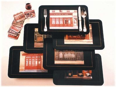 Description Coaster Collection (set of 6) Dinner Mat Collection (6) Lunch Mat Collection (6) Serving Tray (Boulangerie) Serving Tray (Vins/Liqueurs) 12″ x 18″ individually | Sets Created 12,764 8,276 1,112 504 504 | Original Retail $20.00 $65.00 $44.00 $68.00 $68.00 | $60.00 $130.00 $100.00 $134.00 $134.00 |