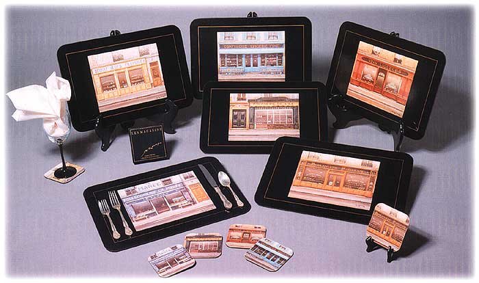 André Renoux is an artist who has made Paris his own. He was the perfect painter / poet to capture the sounds, smells, and taste of Paris. These hardback placemat and coaster tray collections were the beginning of artistic adventures widely imitated today by other artists. Truth of the matter is, there is only one “André Renoux”.